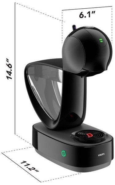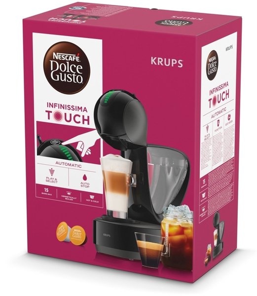 Спробуйте ваші улюблені кавові напої, приготовані у вашій новій капсульній кавомашині NESCAFÉ Dolce Gusto INFINISSIMA Touch від Krups. Завдяки системі високого тиску (до 15 бар) і автоматичному припиненню подачі води кожна кава виходить міцною і насиченою та отримує щільну кремову пінку, як у кав'ярні. INFINISSIMA Touch - це елегантна і сучасна капсульна кавоварка, яка робить приготування кави неймовірно простим і приємним. Просто вставте капсулу з вашим улюбленим напоєм і приготуйте його на ваш смак, використовуючи інтуїтивну сенсорну LED-панель управління. Насолоджуйтеся терпким і насиченим еспресо або побалуйте себе ніжним лате розміру XL. Кавомашина оснащена резервуаром для води об'ємом 1,2 л, якого вистачить на багато кухлів кави. А завдяки екорежиму, який вимикає пристрій за 1 хвилину простою, та системі захисту від накипу використовувати кавомашину легко та зручно. Ваша улюблена кава - колд брю, лате макіато чи класичний еспресо? Це не важливо. Тепер ви можете спробувати понад 35 унікальних смаків і вибрати найулюбленіший. Капсульна кавомашина NESCAFÉ Dolce Gusto INFINISSIMA Touch від Krups - ваш найкращий бариста. Готові спробувати дійсно смачну каву?