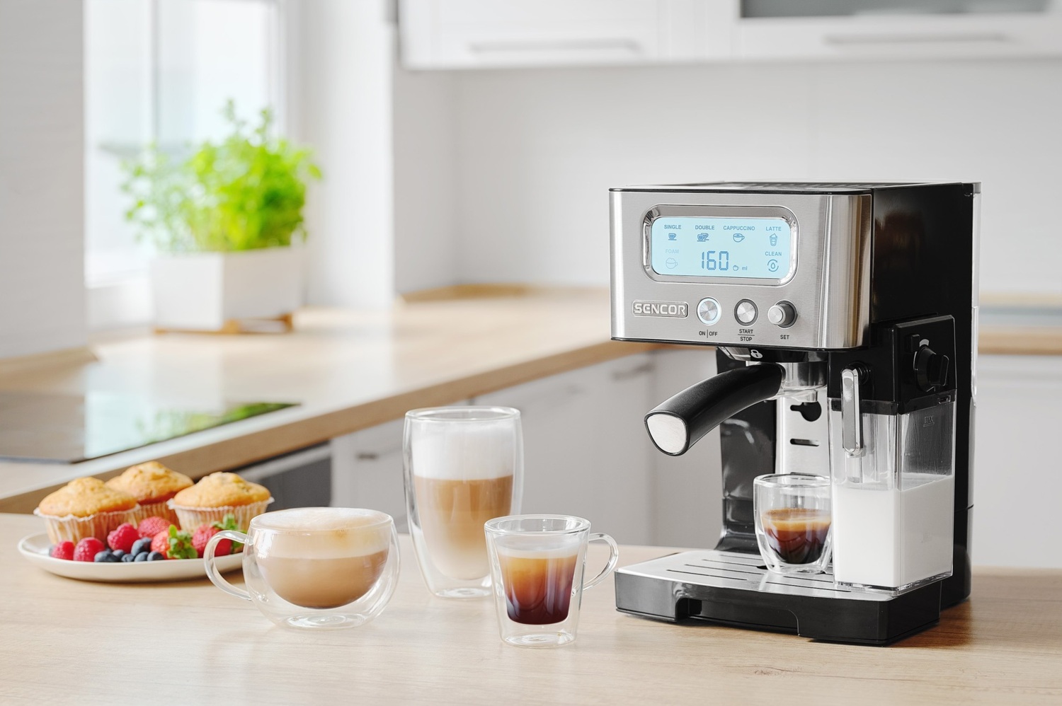 Пориньте у світ ароматної насолоди з елегантною кавоваркою Sencor, що поєднує сучасний дизайн, інтуїтивне керування та професійну якість приготування кави.