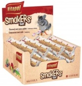 Ласощі Vitapol Smakers для шиншил у вигляді палички, складаються з трьох шарів з'єднаних так, щоб мінімізувати втрати корму під час поїдання. Вони висушуються, а не запікаються, тому зберігають всі вітаміни та натуральний смак.