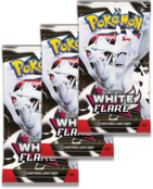 - 3 бустер-пака Pokémon TCG: Scarlet & Violet - White Flare. Кожен бустер-пак містить 10 карт і 1 базову карту енергії. Карти варіюються залежно від набору;