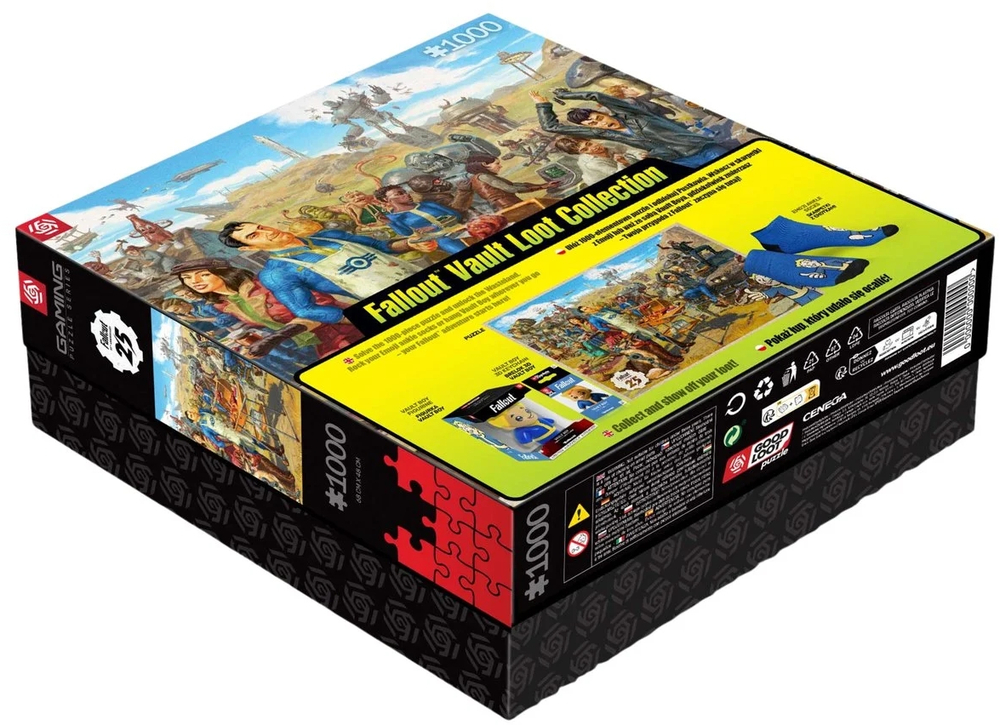 Колекційний набір Fallout Vault створено для тих, хто хоче зануритися у світ Пустощів і зібрати символічні предмети, пов’язані зі всесвітом Fallout. Центральним елементом є пазл на 1000 деталей, присвячений 25-й річниці серії. Після збирання він відтворює сцену, що поєднує знайомих персонажів та атмосферні елементи постапокаліптичного сеттингу.