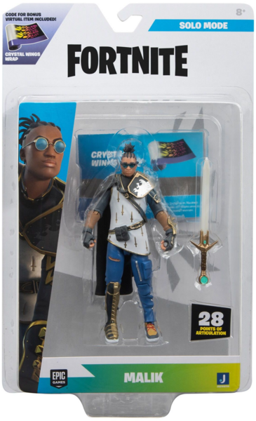 Колекційна фігурка Fortnite Solo Mode Malik. Сідайте в бойовий автобус разом з Malik. Це ігрова фігурка створена за мотивами популярного скіна з гри Fortnite, що постачається з інструментом The King's Oath і кодом для бонусного віртуального предмета: Crystal Wings Wrap. Особливістю фігурки є висока деталізація та рухомі частини тіла, 28 точок артикуляції, тож ви можете встановити її у своїй улюбленій епічній позі. Об’єднайте Malik з іншими фігурками Fortnite і створіть свій загін, щоб досягти Королівської перемоги.