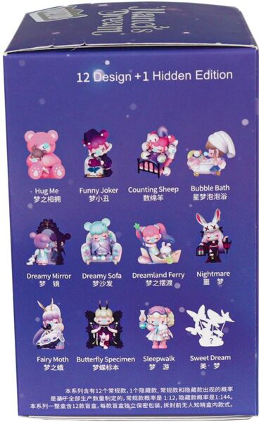 - У цій серії ти можеш знайти 13 персонажів, серед яких є 1 рідкісний! Тут ти познайомишся з Hug Me, Dreamy Mirror, Fallen Angel, Funny Joker, Dreamy Sofa, Fairy Moth, Counting Sheep, Dreamland Ferry, Butterfly Specimen, Bubble Bath, Nightmare, Sleepwalk та Sweet Dream (рідкісна).