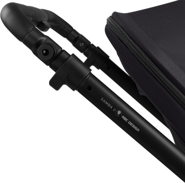 Стоянкове гальмо розташоване безпосередньо на правому задньому колесі. Це усуває необхідність у задній осі. Це економить вагу і простір і, разом з тим, підвищує комфорт при штовханні. З додатковою люлькою для коляски Samba 2 (опція) ваш малюк може супроводжувати вас з самого народження.