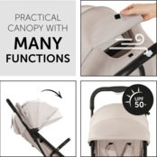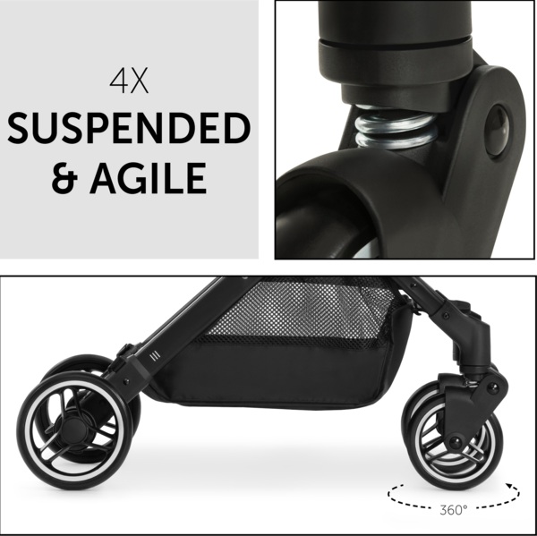 Завдяки амортизаційній підвісці та колесам з плавним ходом ваша дитина отримає задоволення від комфортної їзди. Завдяки поворотним переднім колесам швидке маневрування по торговому центру також стане дитячою грою. Коли ваш малюк захоче спати, ви можете повністю відкинути спинку однією рукою. Сонцезахисний козирок із захистом від ультрафіолету 50+ забезпечує приємний затінок, а віконце "ку-ку" дозволяє підтримувати зоровий контакт з малюком.