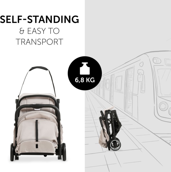Легка, безпечна і компактна - Travel N Care є ідеальним супутником для подорожей, якщо ви любите подорожувати з дитиною. Завдяки алюмінієвій рамі ця зручна коляска легка, стійка і витримує вагу до 25 кг. Крім того, компактна коляска легко складається - швидко і просто однією рукою. Завдяки транспортувальному фіксатору, що самозамикається, складна коляска Travel N Care самостійно стоїть в автобусі, поїзді або літаку і займає мало місця. Крім того, ви можете зручно переносити коляску за м'який плечовий ремінь. Якщо ваша дитина пролила їжу або напій, ви можете зняти чохол і випрати його в пральній машині.