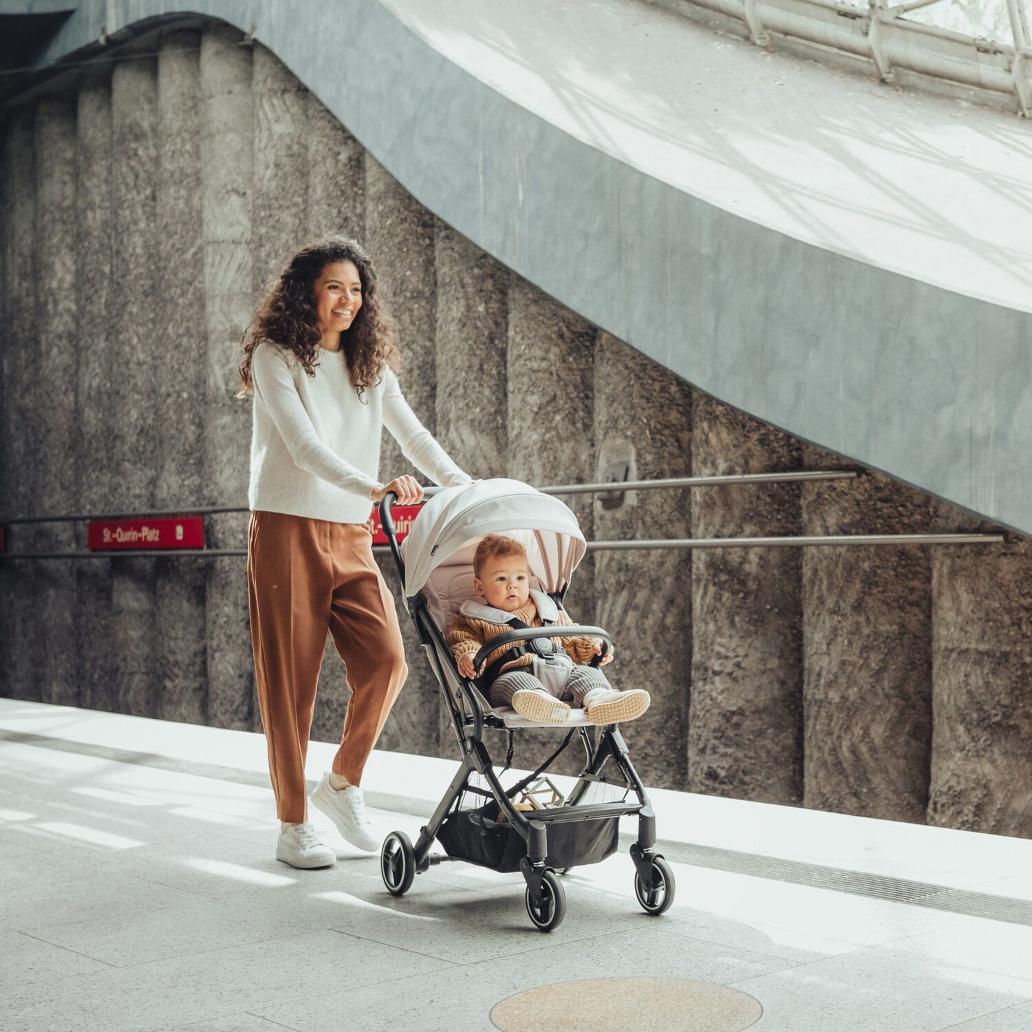Комфортна та безпечна подорож завдяки маневреним колесам і захисту від сонця