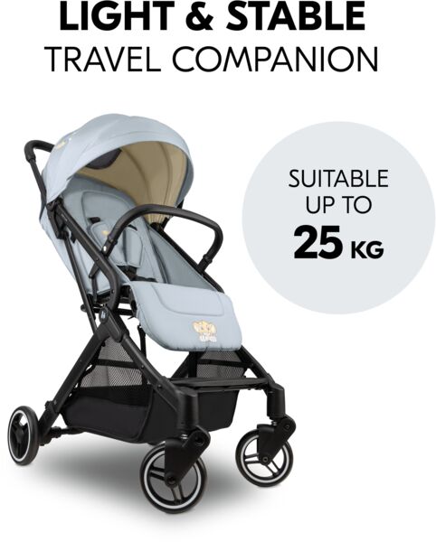 Легка, безпечна і компактна - Travel N Care є ідеальним супутником для подорожей, якщо ви любите подорожувати з дитиною. Завдяки алюмінієвій рамі ця зручна коляска легка, стійка і витримує вагу до 25 кг. Крім того, компактна коляска легко складається - швидко і просто однією рукою. Завдяки транспортувальному фіксатору, що самозамикається, складна коляска Travel N Care самостійно стоїть в автобусі, поїзді або літаку і займає мало місця. Крім того, ви можете зручно переносити коляску за м'який плечовий ремінь. Якщо ваша дитина пролила їжу або напій, ви можете зняти чохол і випрати його в пральній машині.