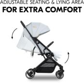 - Зручне сидіння забезпечує достатньо місця для вашої дитини. Для сну ви можете повністю відрегулювати спинку однією рукою, і так само легко повернути її у сидяче положення.