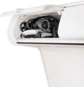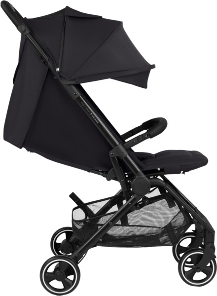 Автоматичний транспортний фіксатор запобігає ненавмисному розкладанню коляски. У складеному вигляді коляску можна транспортувати або за допомогою ручки для перенесення, або зручно перекинувши через плече за допомогою ременя.
