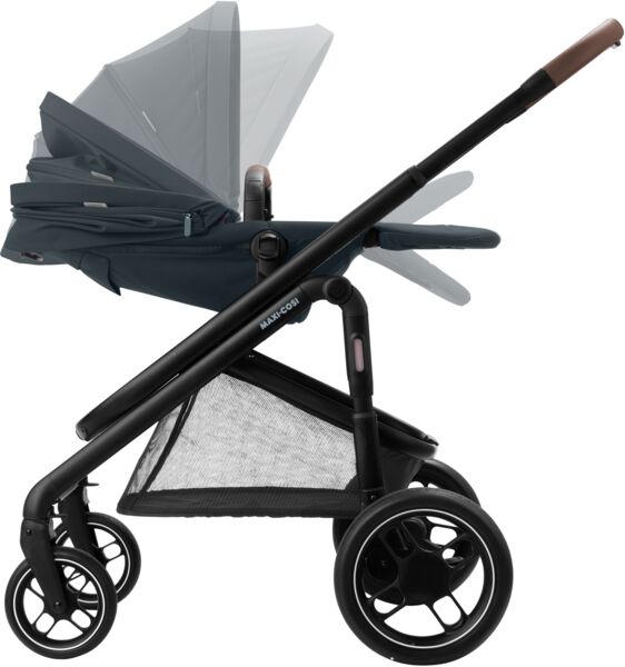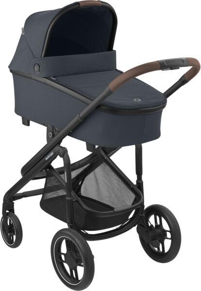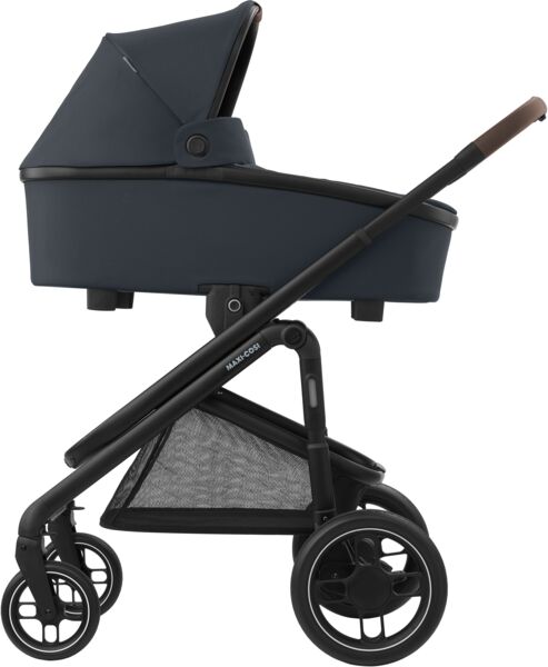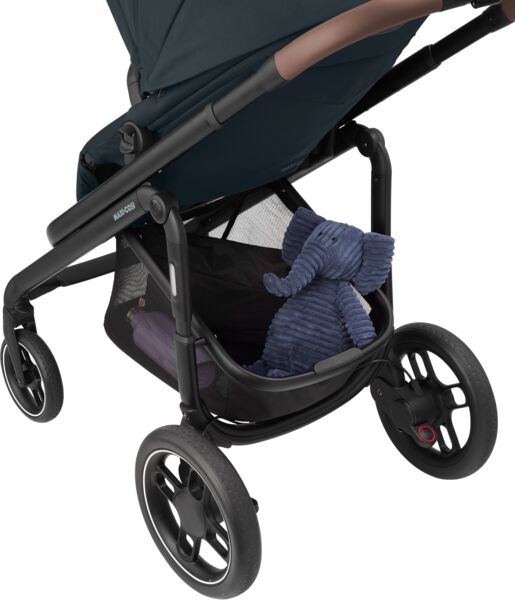 Коляска оснащена великим кошиком, щоб усі речі малюка завжди були під рукою під час прогулянки.