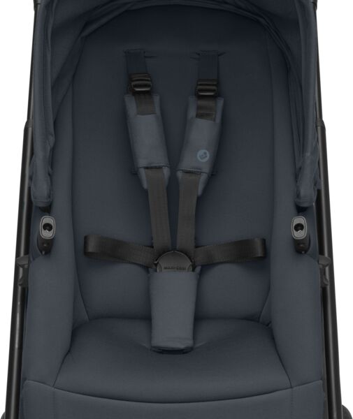 5-точкові ремені безпеки з м'якими плечовими накладками захистять малюка під час прогулянки. А для швидкої фіксації передбачено магнітну пряжку.