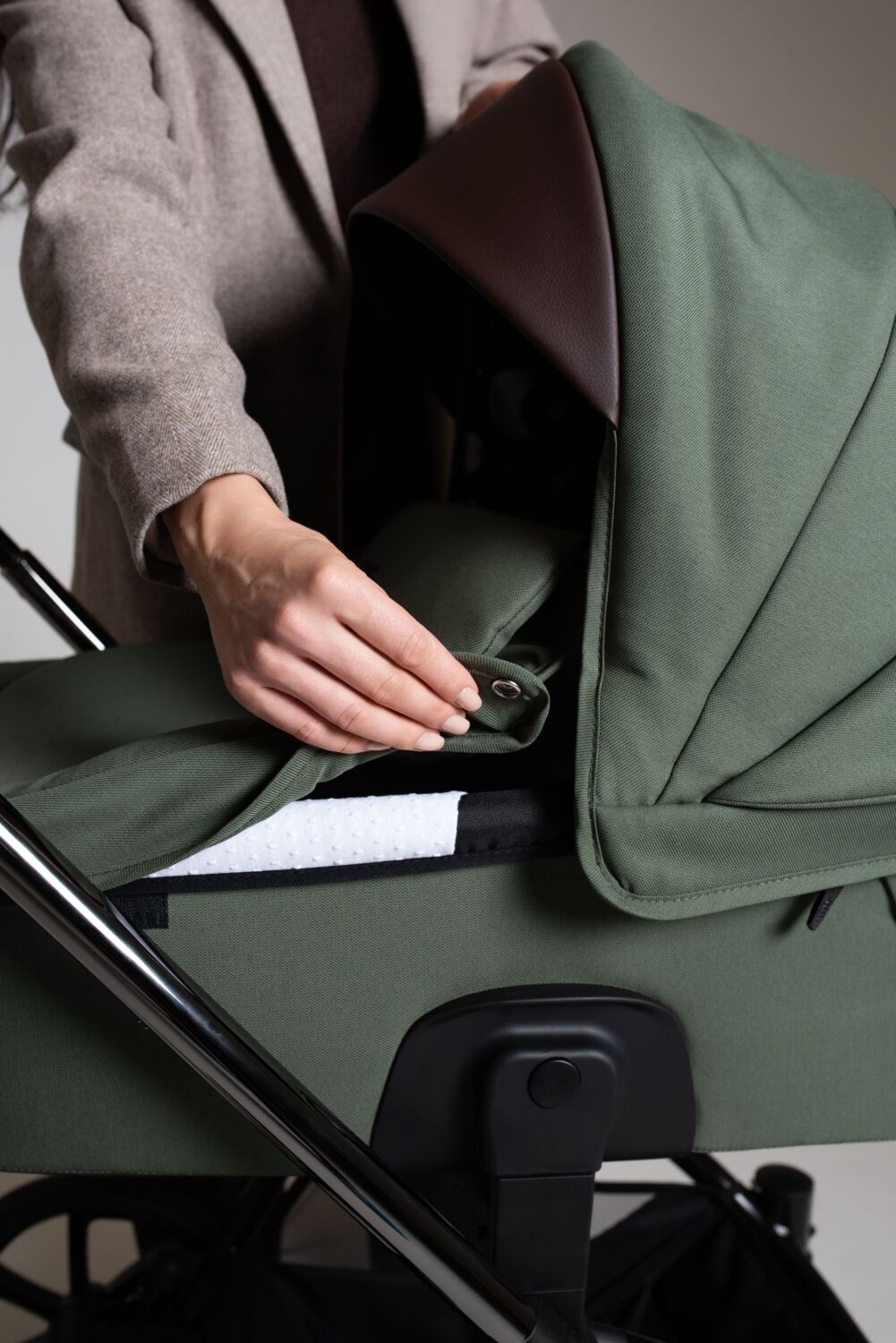 Вдосконалені адаптери, які забезпечують безшовне та надійне з'єднання люльки, сидіння або автокрісла з рамою коляски.