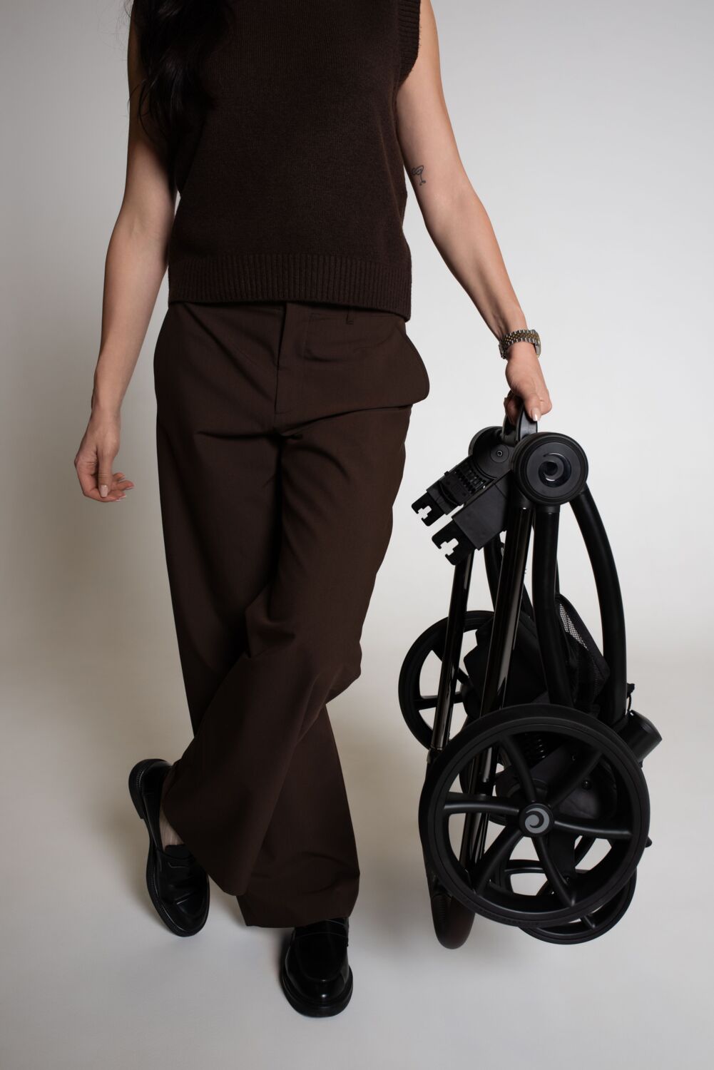 Компактна конструкція дозволяє компактно складати коляску для зручного зберігання та транспортування.