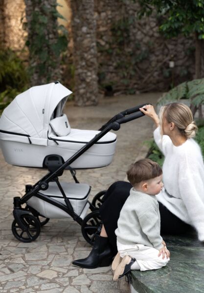 Коляска Tutis Viva5+ забезпечує оптимальний комфорт завдяки технології ThermoCot, Zutis Allroad для плавного руху місцевістю та подвійній амортизації. Акценти з екошкіри додають елегантності, а матрац з ефектом пам'яті забезпечує чудовий комфорт.