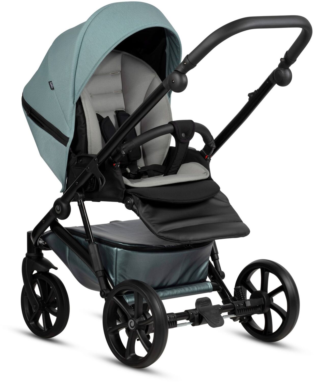 Tutis Eco-Leather Combination поєднує в собі розкішний стиль з екологічністю, використовуючи преміальні екологічно чисті шкіряні акценти, які одночасно міцні та легко чистяться. Цей елегантний дизайн покращує зовнішній вигляд коляски, пропонуючи батькам м'яке і зручне захоплення.