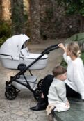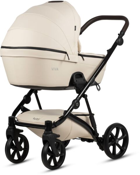 Tutis Eco-Leather Combination поєднує в собі розкішний стиль з екологічністю, використовуючи преміальні екологічно чисті шкіряні акценти, які одночасно міцні та легко чистяться. Цей елегантний дизайн покращує зовнішній вигляд коляски, пропонуючи батькам м'яке і зручне захоплення.