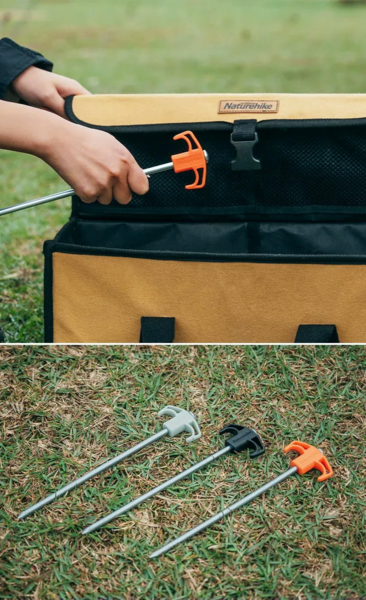 Кожен кілочок виготовлено з високоякісного оцинкованого заліза, що надає їм міцності та стійкості до корозії. Незалежно від умов кемпінгу, ці кілочки гарантовано збережуть надійність і стабільність вашого намету або намету. Процес встановлення та вилучення кілочка став ще простішим. Завдяки унікальній конструкції швидкознімного капелюшка, досить впертися великим пальцем і затиснути пальцями під капелюшком внизу. Два спеціальні роз'єми з боків забезпечують максимальну зручність і швидкість у використанні. Забудьте про незручності під час встановлення намету.