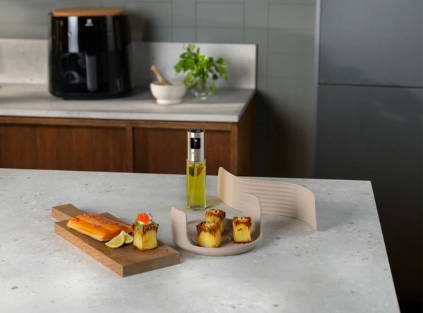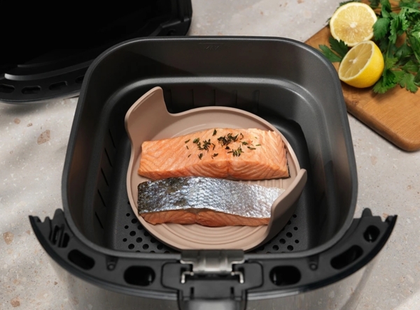 Силіконове деко AirFry захищає дно від пригорання залишків жиру та полегшує сервірування ніжних страв, як-от риба та курка. Його також легко використовувати з формою для випікання та скляною ємністю для зручного розігрівання їжі.