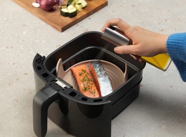 Завдяки одному натисканню на розпилювач олії AirFry навколо вашої страви створюється тонкий шар олійного туману, що покращує її смак і дозволяє уникнути втрати олії.