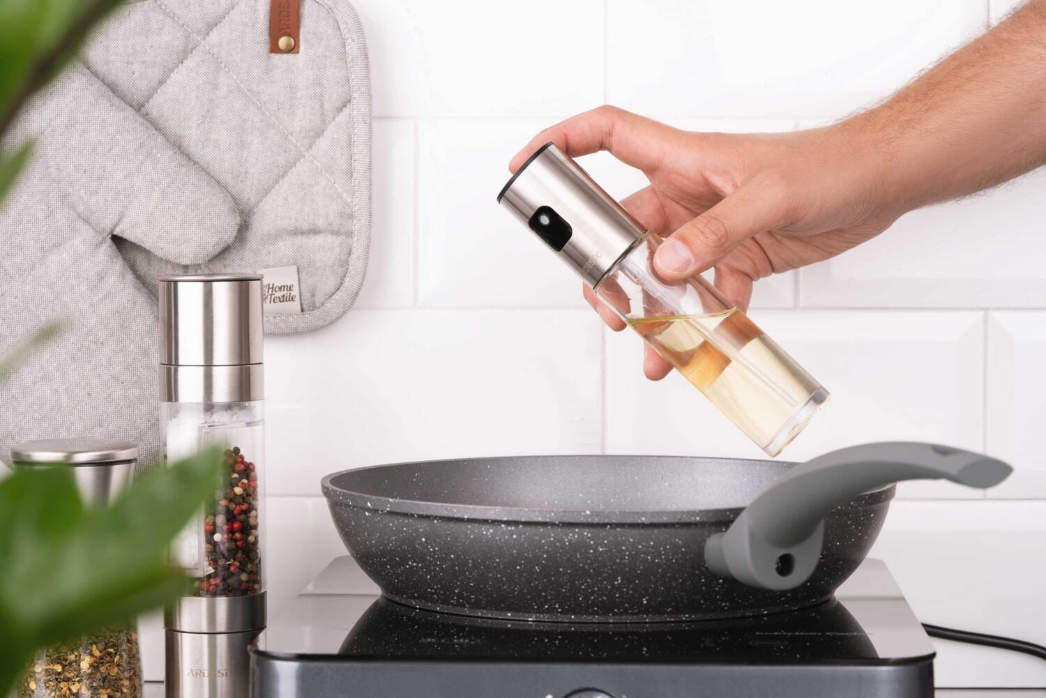 За допомогою розпилювача ARDESTO Gemini можна рівномірно нанести на продукти необхідну кількість олії чи оцту. Стане в пригоді для заправки салатів, під час смаження чи випікання. Мити в посудомийній машині не можна.