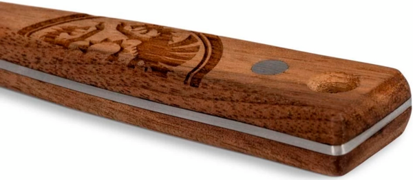 - Ручка з горіхового дерева зручно лежить у руці. Кожна відрізняється оригінальним малюнком.