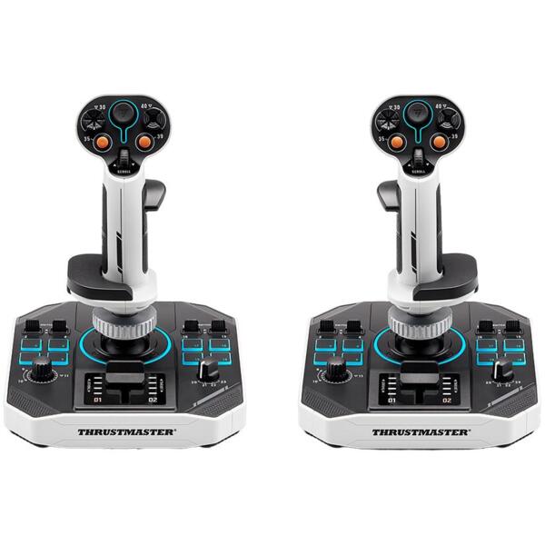 Конфігурація HOSAS Sol-R 2 HOSAS Space Sim Duo забезпечує надзвичайно реалістичний досвід космічного польоту та дозволяє виконувати ще більше дій великим пальцем. Кожен джойстик має 21 кнопку, включаючи 2 тригери (1 подвійний тригер), 2 перемикачі, 1 міні-джойстик і 1 колесо, тому ви можете покластися на максимальну спритність у пілотуванні свого космічного корабля.