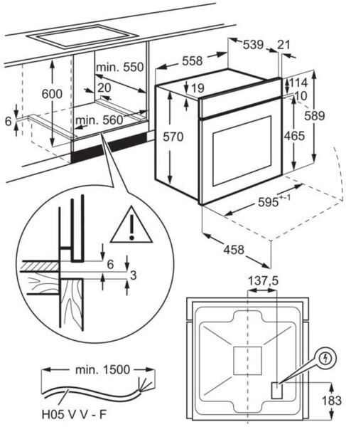 | Висота для вбудовування, мм | 593 |