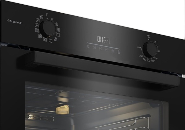 Хороша видимість страви, що готується. Хочете спостерігати за процесом приготування, але не хочете відкривати дверцята, щоб не випускати жар? Галогенне підсвічування добре висвітлює нішу духової шафи, даючи змогу стежити за своїм кулінарним шедевром через щільно закриті дверцята.