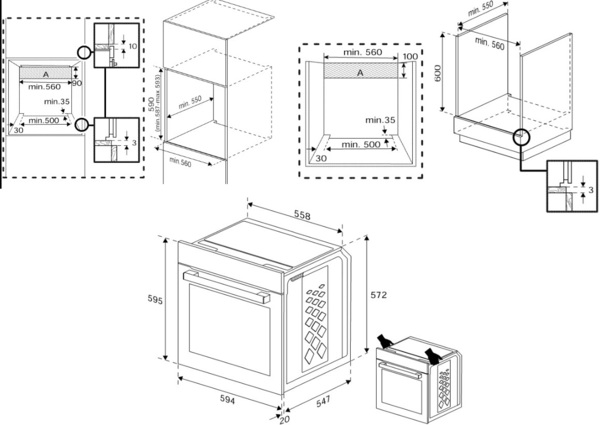 | Висота для вбудовування, мм | 600 |