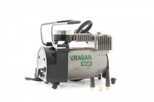 АвтокомпресорУраган 90130Може бути використаний для накачування шин позашляховиків, мікроавтобусів і легкових автомобілів. Також в комплекті поставляється набір необхіднихадаптерівДля накачування велосипедних шин, надувних човнів і матраців, м'ячів і т.д.