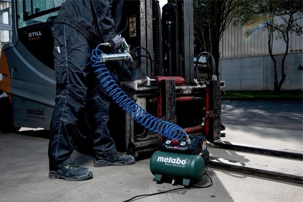 - Компресор Metabo Basic 160-6 W OF обладнаний двигуном з електронним захистом від перегріву.