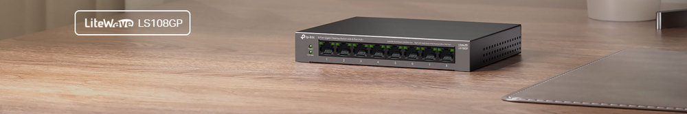 - Комутатор TP-LINK LS108GP 8xGE (8xPoE), 62 Вт (LS108GP)