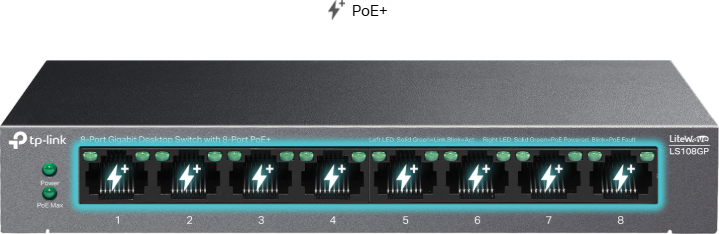 Комутатор, що відповідає стандартам IEEE 802.3af/at PoE, підтримує загальний бюджет потужності PoE 62 Вт з максимальною потужністю 30 Вт на порт PoE+. Коли загальне енергоспоживання перевищує 62 Вт, інтелектуальне керування живленням відключить живлення портів з нижнім пріоритетом, щоб захистити пристрої від пошкоджень.