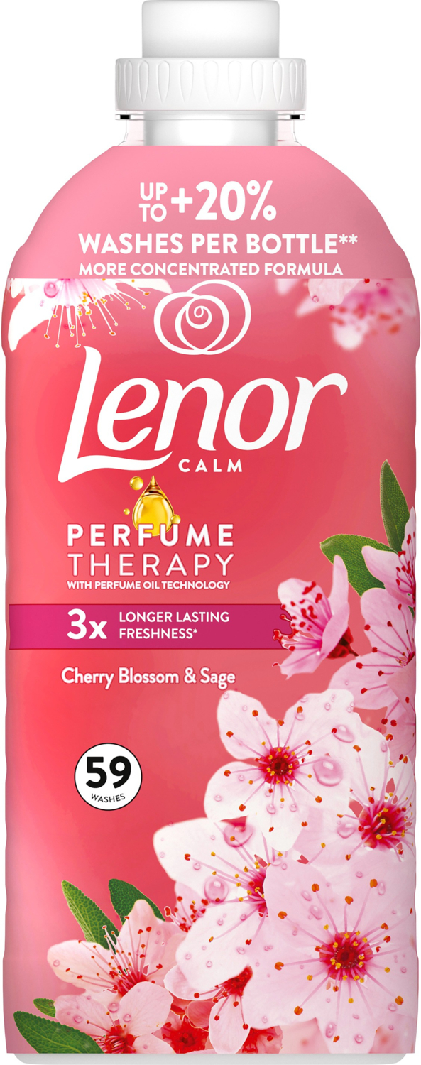Кондиціонер для білизни Lenor Вишневий Цвіт і Шавлія забезпечує в 3 рази триваліший аромат (порівнюючи з Lenor для Чутливої Шкіри) для маленьких моментів розслаблення протягом усього дня. Його аромат наповнений нотками ефірних олій.