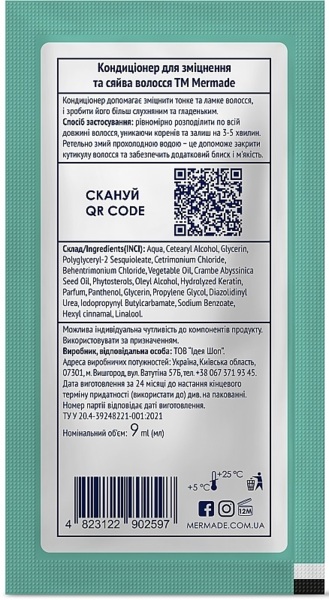- Кондиціонер для зміцнення та сяйва волосся Mermade Keratin & Pro-vitamin B5 9 мл