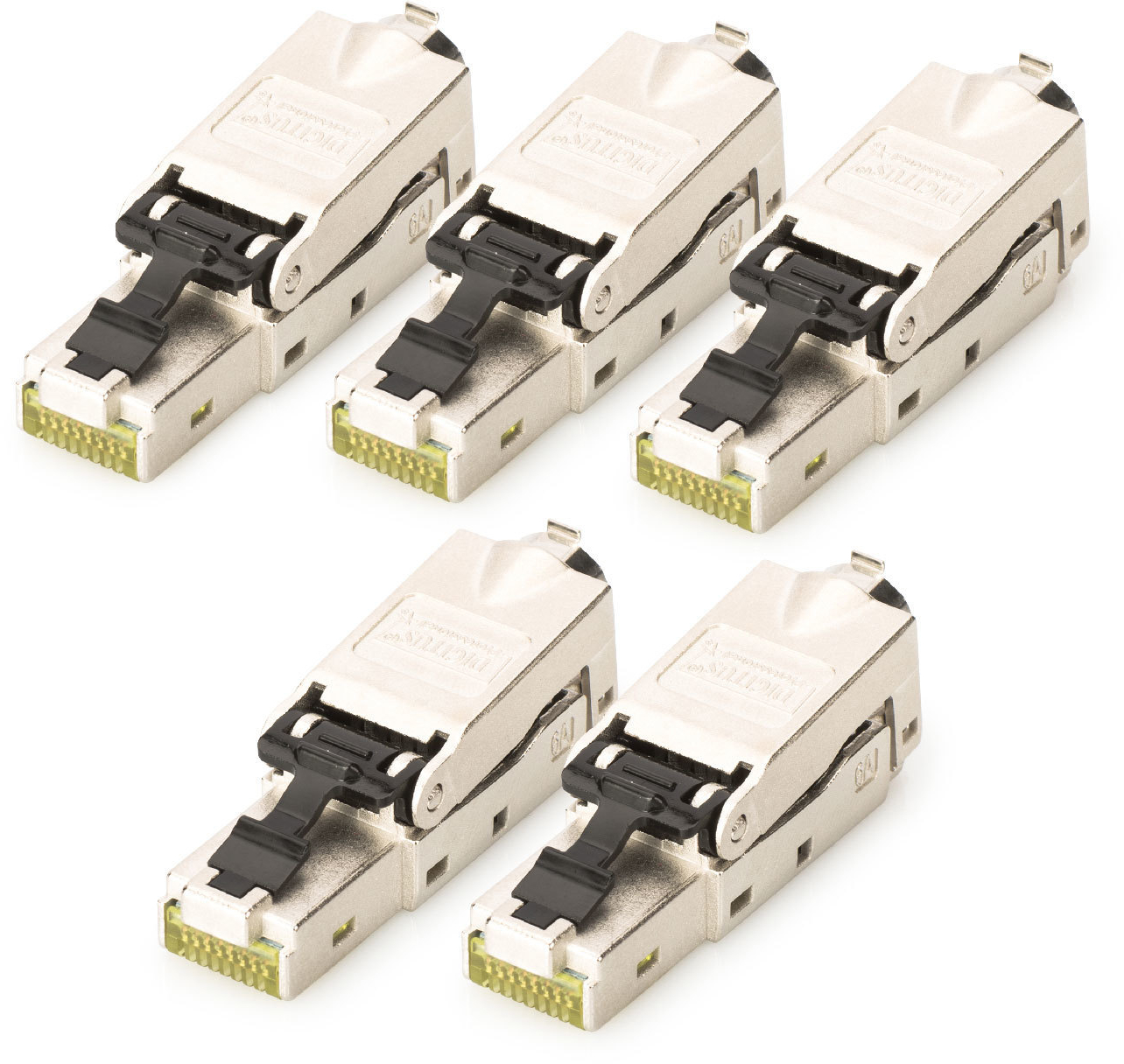 DIGITUS CAT 6A RJ45-штекер для монтажу на місці — це сучасний високоякісний штекер, який відрізняється не тільки простотою використання, але й надійністю та швидкістю монтажу на місці. Швидке складання за 60 секунд без спеціальних інструментів, а також висока гнучкість роблять його ідеальним вибором. Він підходить для всіх мереж голосового зв'язку до 10 Гігабіт Ethernet. Задоволені клієнти, завдяки швидкій та економічній установці, ремонту та обслуговуванню, є логічним наслідком використання цього інноваційного штекера RJ45.