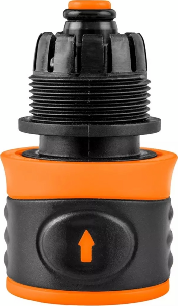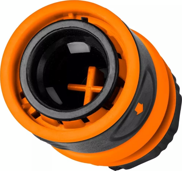 Конектор із функцією Stop сумісна з садовими шлангами діаметром 1/2". Виготовлена з високоякісного пластику та додатково покрита практичною гумою, що впливає на комфорт використання елемента. Такий вибір матеріалів також забезпечує міцне зчеплення і запобігає ковзанню. З'єднувач дозволяє перекрити потік води при від'єднанні від спринклера, без необхідності перекривати весь водозабір на джерелі.