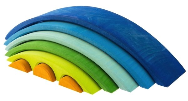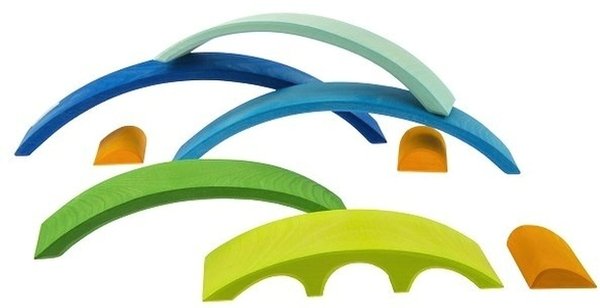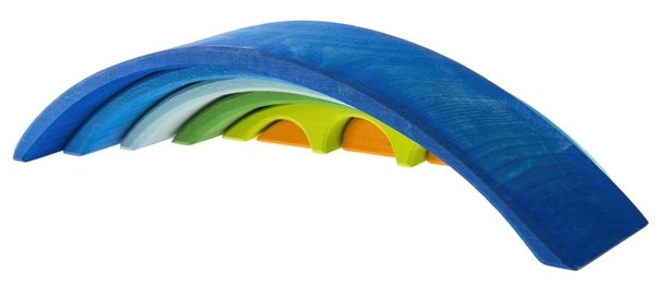 Казковий міст на заході сонця стає ближче завдяки конструктору німецького виробника іграшок Nic. Набір у вигляді моста, складеного із 8 дерев’яних дугоподібних форм. Довжина найбільшої дуги - 39 см, ширина - 7 см, а висота зібраного "моста" - 8 см. Комплект запакований у прозору поліетиленову плівку. Усі деталі виконані із натурального дерева, вкритого кольоровими матовими фарбами на водній основі. Матеріал абсолютно нетоксичний і безпечний для дітей.