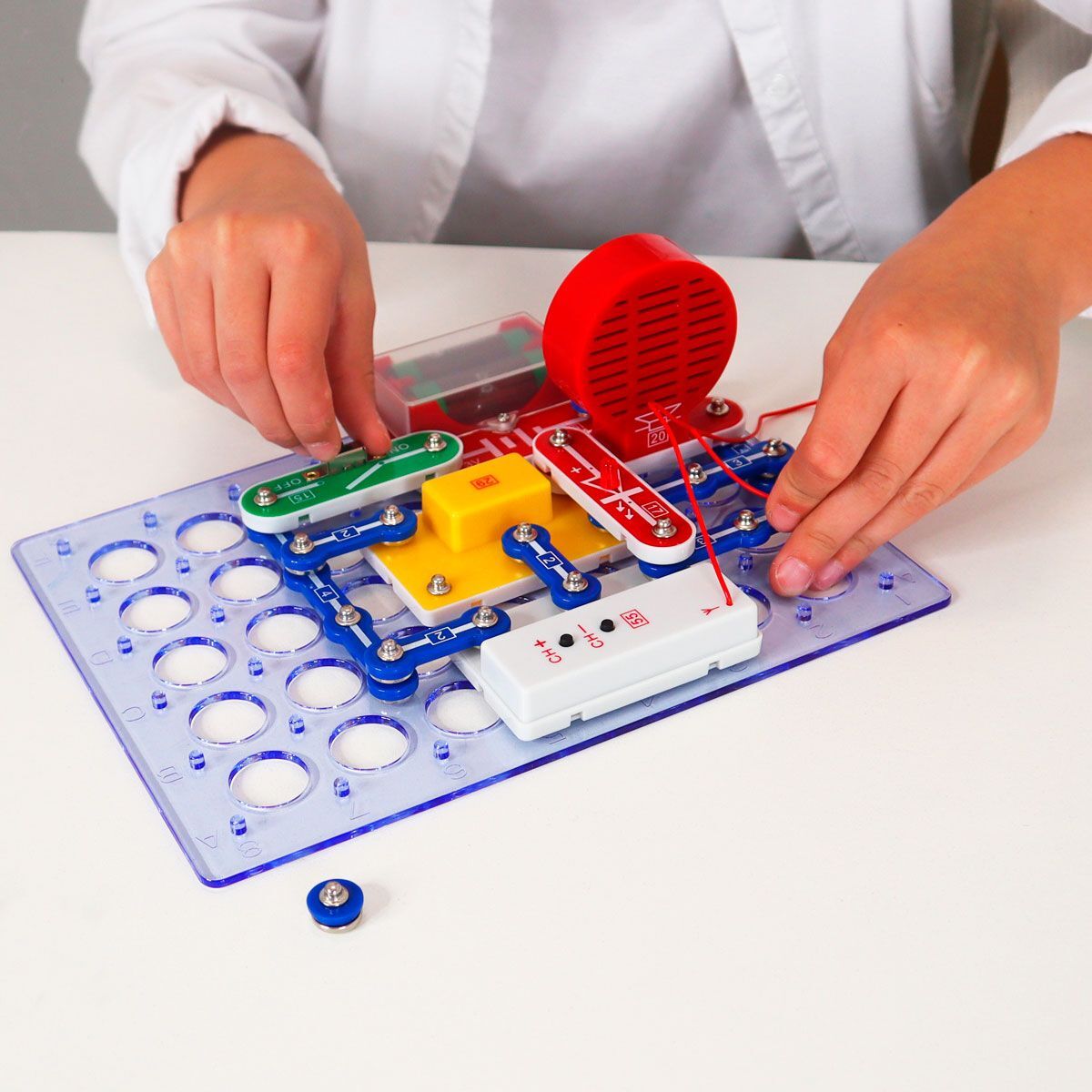 Конструктор дозволяє дитині своїми руками створювати FМ-радіо, допоможе в знайомстві з логічними елементами, налаштуванні станцій FМ, регулюванні гучності. Завдяки оригінальному способу з’єднання деталей Ви зможете домогтися швидкого і ефективного результату без використання паяння.