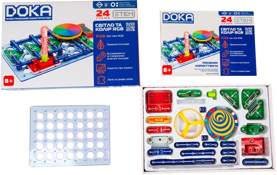 Конструктор електронний DOKA "СВІТЛО ТА КОЛІР RGB' безсумнівно сподобається юним дослідникам!