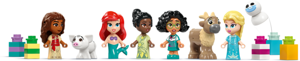 З кожним міні-конструктором діти можуть створювати історії з улюбленими героями або вирушити в подорож до замку Діснея у грі, що входить до комплекту.