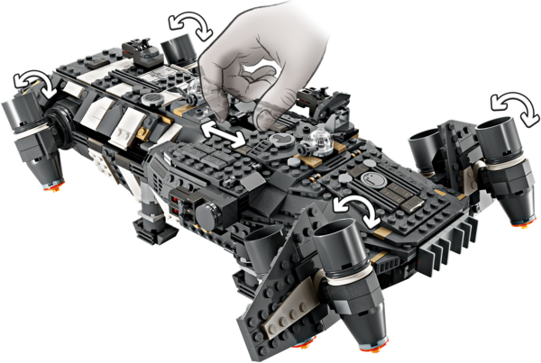 - Автентичні особливості - Кабіна пілота, відсік із сидіннями для 4 мініфігурок LEGO, двигуни, що обертаються, для посадки/зльоту або польоту, 2 стрілецькі гармати та 2 обертові турелі, кожна з 2 стрілецькими знаряддями