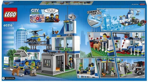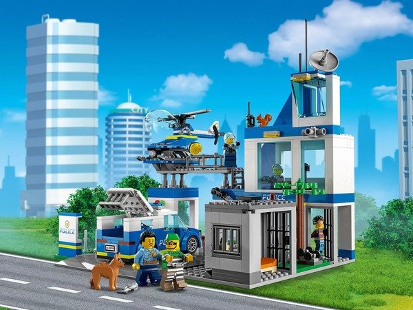 Цей набір для дітей від 6 років і старше з поліцейською дільницею LEGO City наповнений різними функціями для динамічної гри і містить 3 персонажів серіалу «ЛЕГО Сіті».