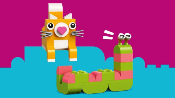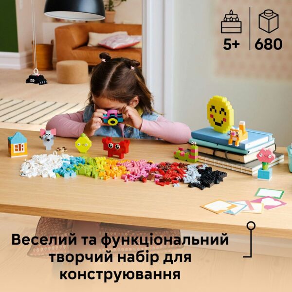 «Щасливий творчий набір» для дітей — це коробка з кубиками LEGO, яка наповнена барвистими кольорами, іграшками, і можливостями гри для дівчаток і хлопчиків віком від 5 років.