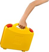 Відкрий жовту коробку із яскравими барвистими кубиками, та поринь у розваги, створюючи чудових істот, класні машини, затишні будинки й будь-що інше, що підкаже уява. Потім розклади кубики по відділеннях, як тобі зручно, і можна вирушати.
