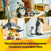 Діти можуть насолоджуватися пригодами дикої природи з цим ігровим набором Creator 3 в 1 «Сім'я панд», а потім перетворити його на сім'ю косаток або пінгвінів.