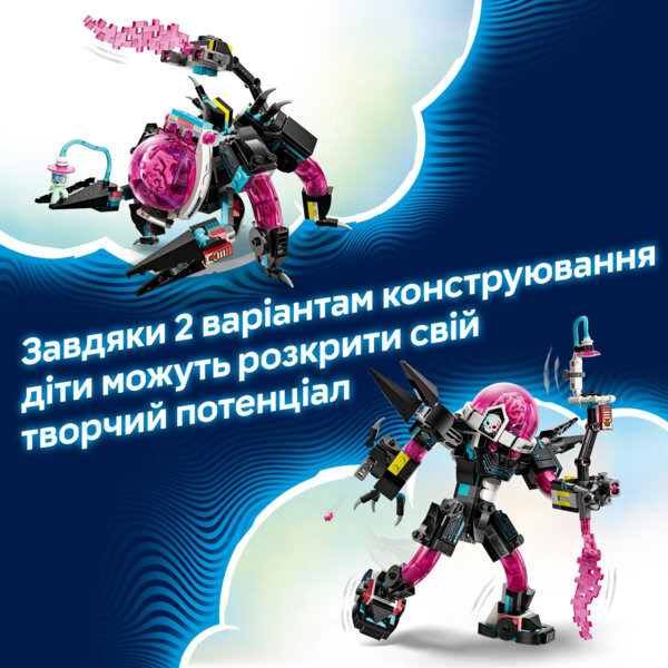 Перебудуйте капсулу на іграшку-механіка Cyber Brain або іграшку-скорпіона Cyber Brain. Містить стрільців-шпильок, мега-гармату для стрільби з липкої речовини та кабіну, що відчиняється. Мініфігурка Матео та фігурка Дрімлінга надихають на творчі рольові ігри.
