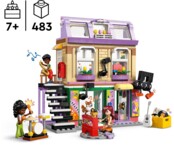 Конструктор для меломанів — цей набір LEGO Friends Музична крамниця і квартира містить безліч аксесуарів, натхненних музикою, зокрема іграшкову ударну установку, піаніно, гітару, саксофон тощо.