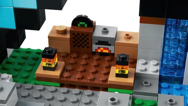 Діти вбудовують гігантську базу алмазного меча в бік гори і захищають її від нападів ворожих мобів. На базі є стіл, печиво та музичний автомат, на якому можна" поставити" платівку. Зовні на варті стоять фігурки солдата-вартового та воїна-охоронця. Додаткову вогневу міць забезпечують 2 стрілки, розташовані в передній частині бази. Серед ворожих мобів – крипер і скелет. Дружні моби включають свиню та алея, у якого крила з фольги. Важель у нижній частині вежі викликає вибух, який обрушує частину конструкції. Для додаткової цифрової розваги в LEGO Builder є інтуїтивно зрозумілі інструменти масштабування та повороту, які дозволяють дітям візуалізувати свою модель у процесі будівництва.
